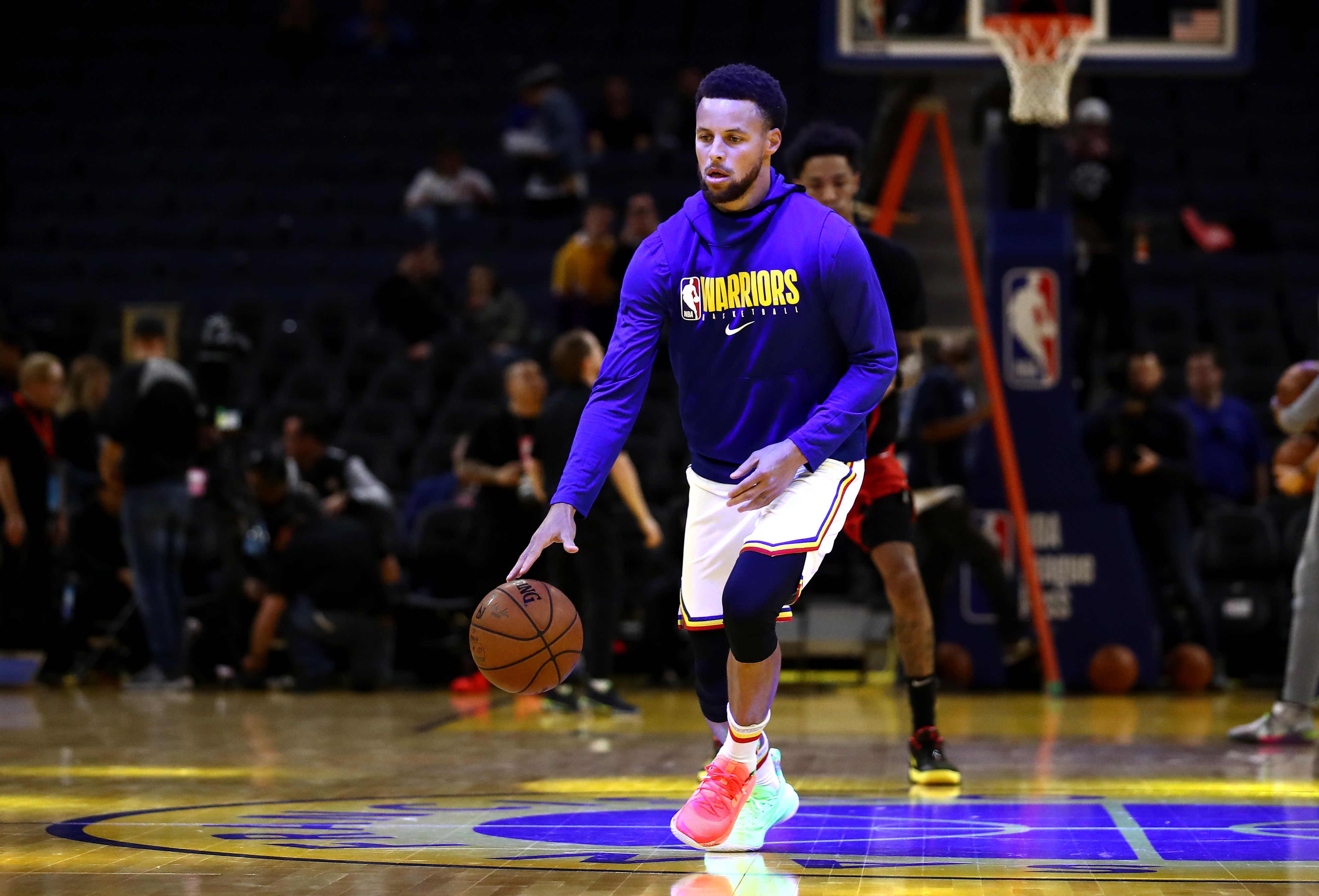 כולל לוגו nba, לוגו הקבוצה גולדן סטייס ווריורס ודמות של השחקן סטף קרי.
